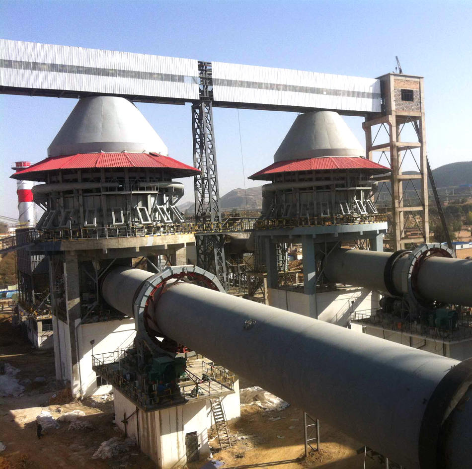 物料在筒體內(nèi)受熱均勻、充分、熱傳遞迅速,另一方面物料和氣體逆向流動(dòng),熱量得到充分利用,廢氣通過窯尾的預(yù)熱器,熱量被二次利用與烘干物料,成品石灰?guī)С龅臒崃拷?jīng)窯頭下的冷卻機(jī)轉(zhuǎn)換成熱氣流又轉(zhuǎn)回窯內(nèi),大大提高了窯的熱效率。